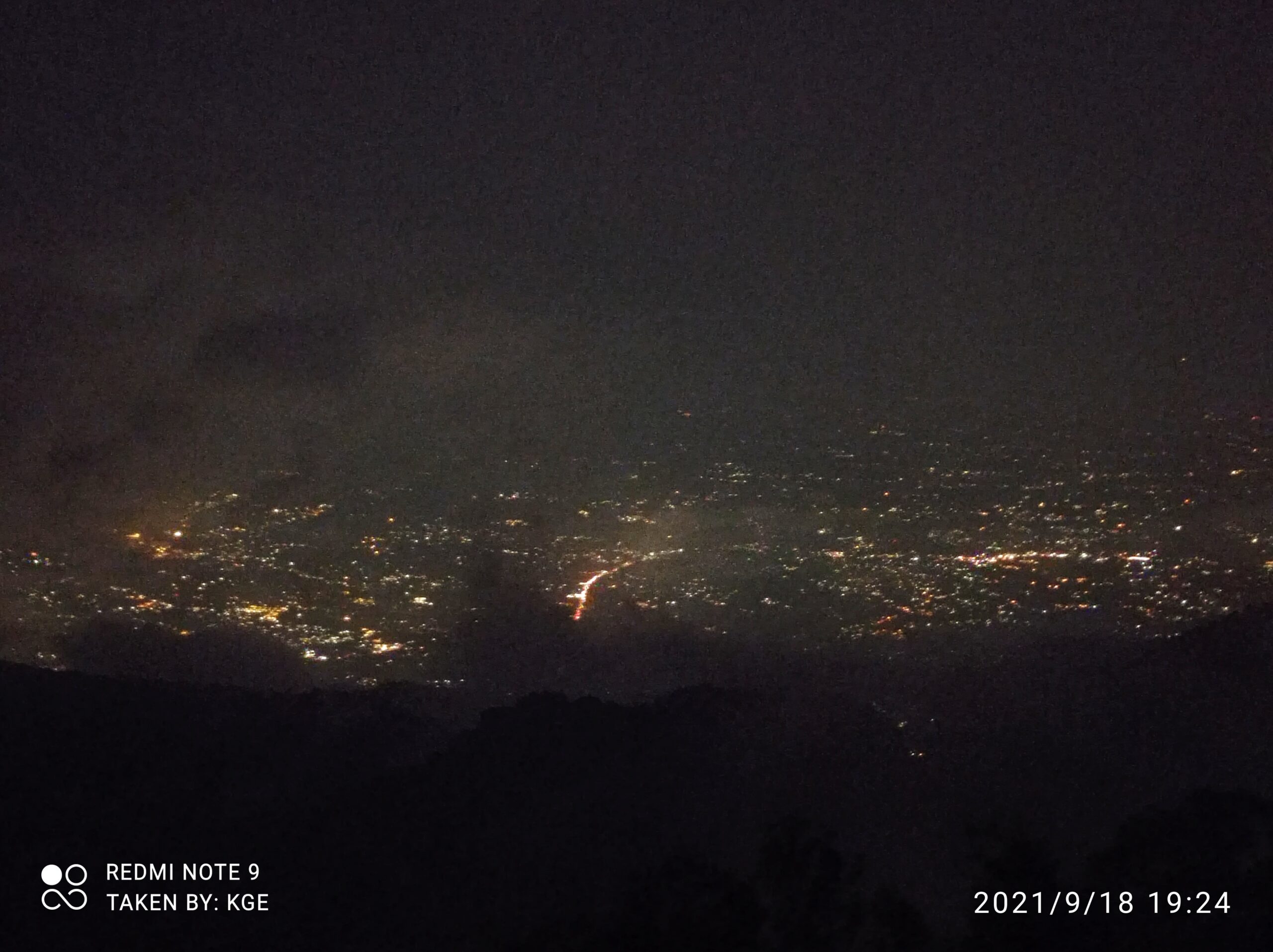 Pemandangan Lampu Kota Menghiasi Malam di Puncak Gunung Kencana