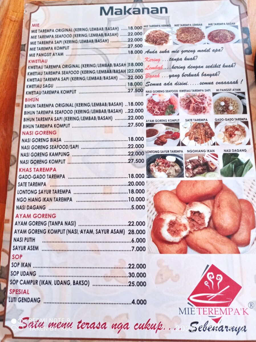 Untuk menu dan harga makanan di Mie Tarempa Sungai Panas, dan juga Mie Tarempa cabang lain kurang lebih sama, rata-rata harganya seperti yang tertera di menu dibawah ini (daftar harga per Juli 2022 ya, sewaktu-waktu mungkin bisa berubah):