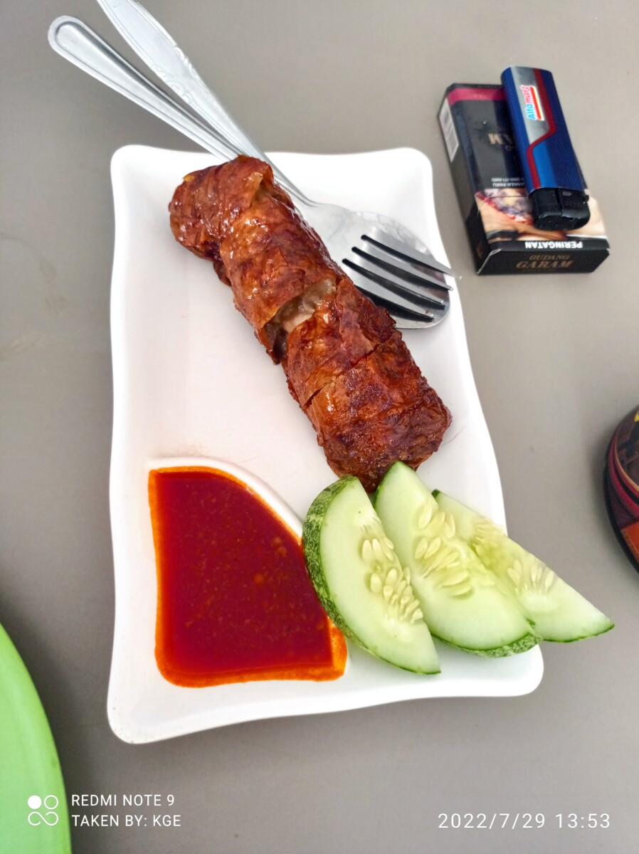 Kedai Anambas adalah salah satu tempat makan yang berlokasi di Palm Spring. Disini menyediakan beberapa makanan khas Riau seperti nasi dagang, mie Anambas, luti gendang, dll. Selain itu disini juga menyajikan makanan nusantara pada umumnya seperti nasi goreng, ayam goreng, roti bakar, dll. Untuk luti gendang nya, kalau kita beli di warung Mie Tarempa hanya ada varian original yang isinya ikan tuna, di kedai Anambas ini bisa memilih varian lain seperti isi ayam kari, coklat, stroberi, keju dll. 1 luti gendang disini dihargai 4000 rupiah saja. Dan di makan malam kali ini selain luti gendang, karena penasaran sama rasanya ikan salai akhirnya saya memilih menu Nasi Ikan Salai Matah. Ikan salai adalah salah satu jenis ikan asap tradisional Indonesia dan merupakan kuliner lokal dari Kabupaten Muara Enim, Sumatra Selatan. Di sini ikan salai dimasak dengan sambal matah lalu disajikan dengan telur goreng mata sapi. Sebenarnya saya tidak boleh makan pedas, tapi karena penasaran ya sudah sekali-kali gakpapa deh, sambil pas makan sambalnya banyak dipinggirin, biar kena minyak sambalnya saja 😀 . Untuk rasanya enak gurih, ikannya juga empuk, dan tentu saja pedas karena memang di masak sambal matah, tapi kalau sambalnya dipinggirkan, tingkat kepedasannya masih masuk untuk saya yang gak boleh makan terlalu pedas. 1 porsi Nasi Ikan Salai disini dihargai 31 ribu.