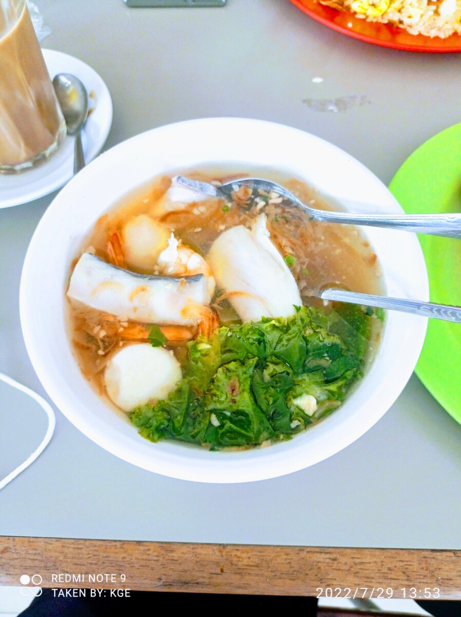 Sedangkan untuk sop nya, karena saya memilih sop campur isiannya antara lain bakso, ikan, udang, dan sayur entah itu kol atau sawi saya kurang tau 😀 . Rasa sup nya menurut saya enak, gurih asin, dan topping nya tidak pelit, bakso, ikan, dan udangnya porsinya banyak.