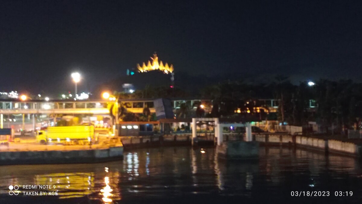 Sabtu 18 Maret 2023, sekitar pukul 00:50 kapal berikutnya tiba & mobil mulai mengantri masuk kapal. Dan kebetulan dapatnya kapal KMP Kirana 9 milik PT Dharma Lautan Utama (DLU). Ini kapal mantap banget menurut saya kalo di kelas reguler/ekonomi. Pengalaman beberapa tahun lalu naik kapal reguler/ekonomi dapat KMP Menggala fasilitas seadanya, kursi dari plastik keras, ga ada AC, kapal kumuh. Tapi itu tidak terjadi dengan KMP Kirana 9 ini, fasilitasnya bak kapal eksekutif. Pintu masuknya mewah dan bersih. Ruang penumpang ber-AC dengan kursi yang sangat empuk dan bisa di reclining, di depannya ada panggung hiburan yang bisa untuk live music. Fasilitas lengkap sekali, mulai dari tempat charger station, mini bar, kantin, toilet, mushola, ruang informasi, dll. Ada juga ruang tidur untuk penumpang dengan kabin yang nyaman dan tentu saja dilengkapi AC, semua fasilitas tadi bisa didapat gratis tanpa biaya tambahan apapun meskipun ini kapal kelas reguler/ekonomi. Bagi yang tidak biasa di ruang AC atau ingin sambil ngrokok, bisa naik di bagian luar kapal, terdapat juga bangku-bangku yang nyaman, serta kantin diluar. Ada juga tempat bersantai layaknya tempat tidur santai yang ada di pinggir pantai yang bisa digunakan untuk tiduran. Pokoknya seneng banget dah naik kapal ini, sudah murah harga ekonomi, tapi pelayanan & fasilitas mantap. Dengan harga ekonomi 22 ribu, fasilitas yang didapat gak kalah dengan kapal eksekutif seharga 50 ribu yang dulu pernah saya naiki yaitu KMP Sebuku, mungkin cuma kalah di durasi waktu penyeberangan saja ya yang mana kapal eksekutif lebih cepat. Kurang lebih sekitar pukul 01:30 kapal mulai berjalan meninggalkan pelabuhan Merak, traveling Palembang murah pun mulai meninggalkan bagian dari Pulau Jawa. Oh iya untuk artikel pengalaman merasakan perbedaan naik kapal eksekutif dan ekonomi bisa dilihat di sini ya.