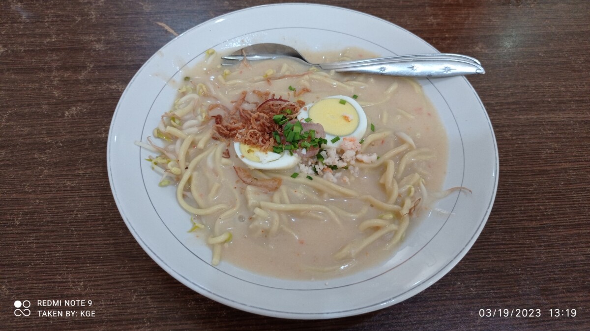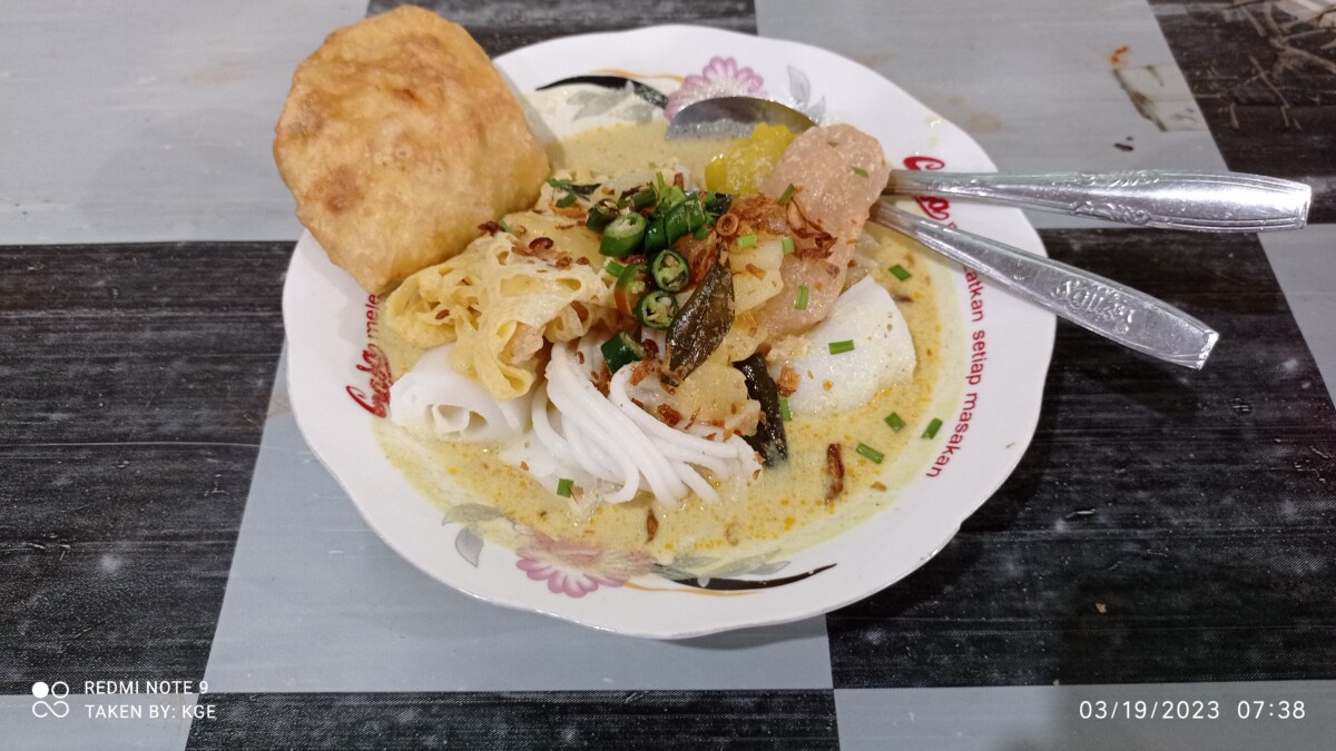 Disini menyediakan berbagai macam menu makanan tradisional Palembang yaitu Burgo (berbentuk seperti dadar gulung yang diiris kasar), Lakso (berbentuk mie tebal), Laksan (variasi dari pempek lenjer yang dipotong-potong), Celimpungan (adonan sagu dan ikan seperti pempek yang dibentuk bulat & kecil), dan Regit (menyerupai roti berbentuk segitiga seperti dadar gulung) yang disajikan dengan kuah sup berbahan santan berwarna kuning dan rasa gurih. Anda bisa memesan menu2 diatas sesuai keinginan, atau jika anda ingin menikmati semua secara bersamaan ga usah bingung, cukup pesan saja paket campur komplit, maka semua menu diatas akan disajikan dalam 1 porsi, dengan harga 20000 rupiah. Selain menu diatas, disini juga menyediakan nasi uduk, lontong sayur & pempek.